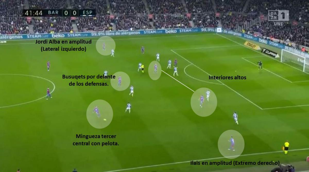-Óscar Mingueza tercer central: El canterano jugaba como tercer central en salida junto a Eric García y Gerard Piqué. Ofreció más seguridad tras perdido y un pase más para romper el bloque defensivo rival.