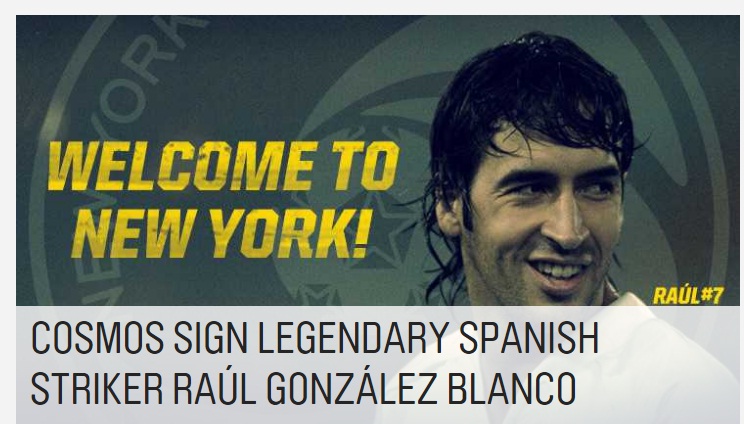 Así anunciaba el New York Cosmos el fichaje de Raúl González Blanco: