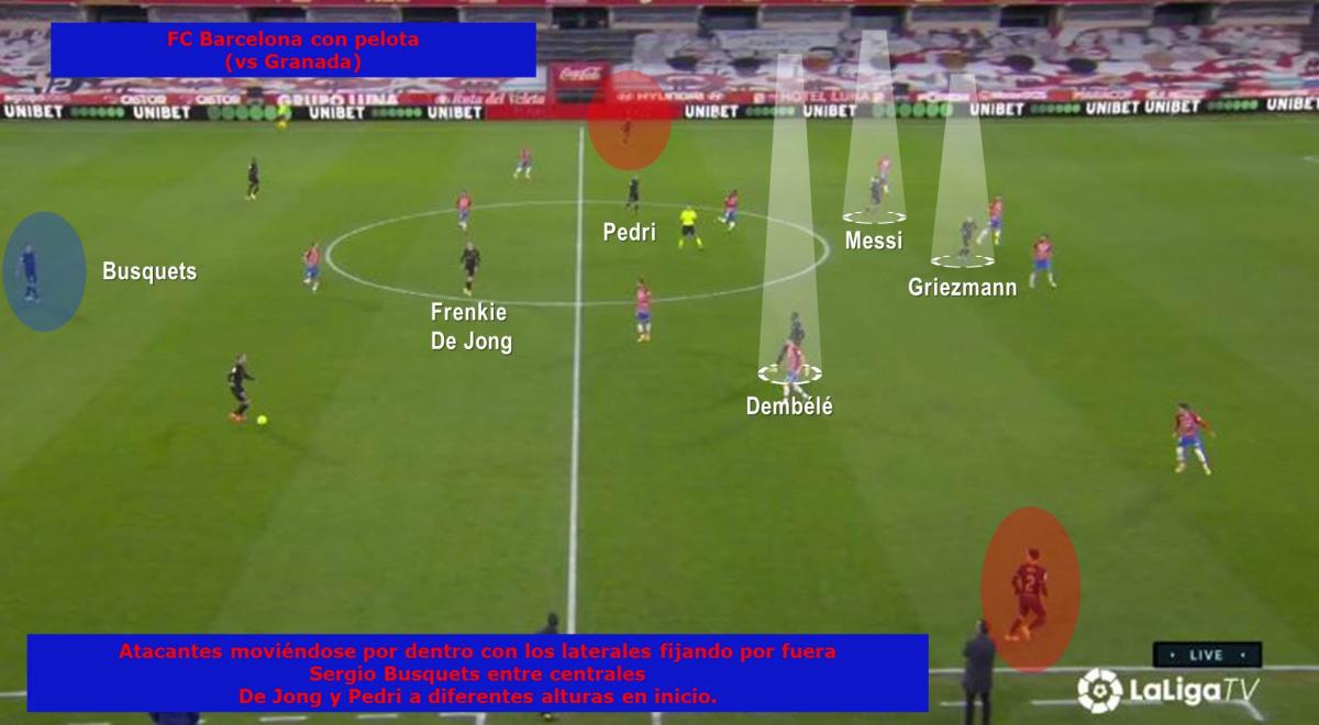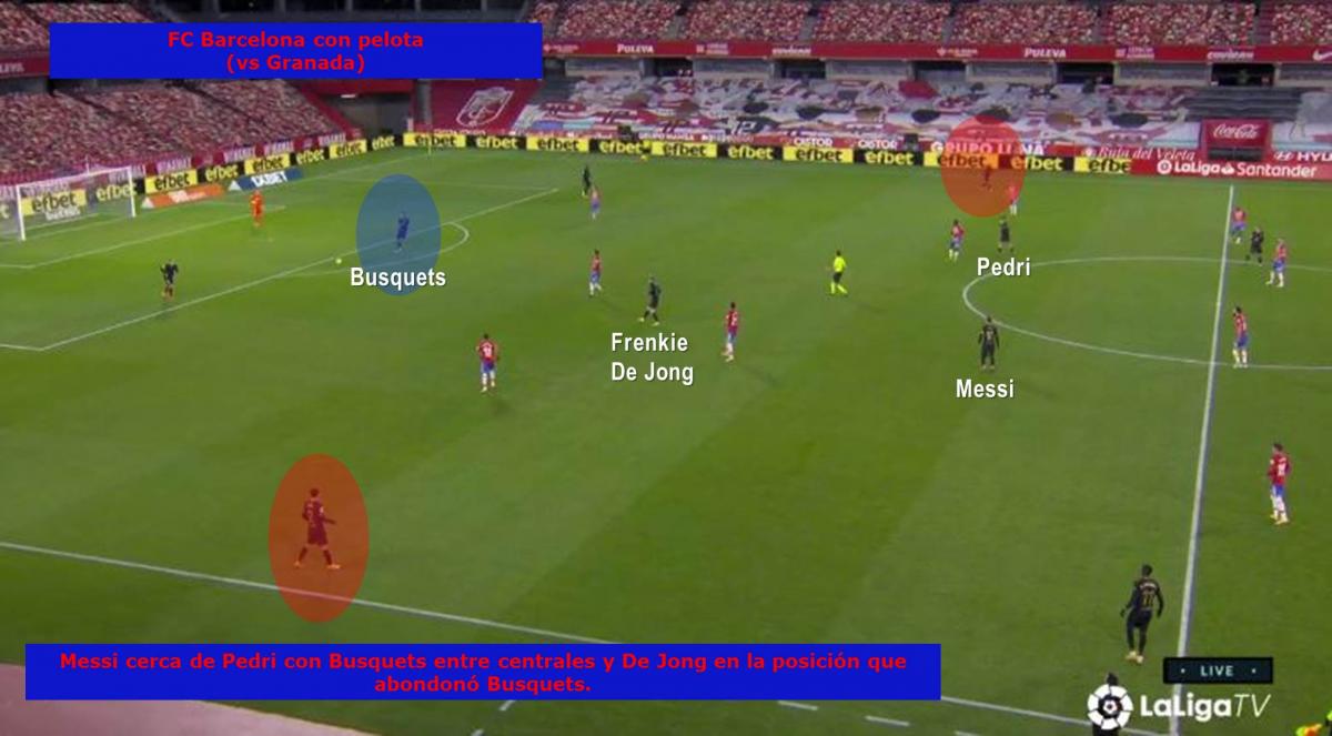 -El regreso al 4-3-3: Pese a que los sistemas solo sean un punto de partida para conocer la disposición de los equipos, el regreso al 4-3-3 nos ha ayudado a ver la mejor versión del Barcelona en lo que llevamos de temporada. La presencia de Pedri como interior izquierdo (más libre y cerca de Lionel Messi) y Frenkie de Jong como interior derecho (con relevancia en varias alturas/carriles de la cancha) por delante de Sergio Busquets nos ha ayudado a ver a un equipo más versátil a nivel ofensivo y con una estructura mucho más sólida a la hora de jugar sin pelota.