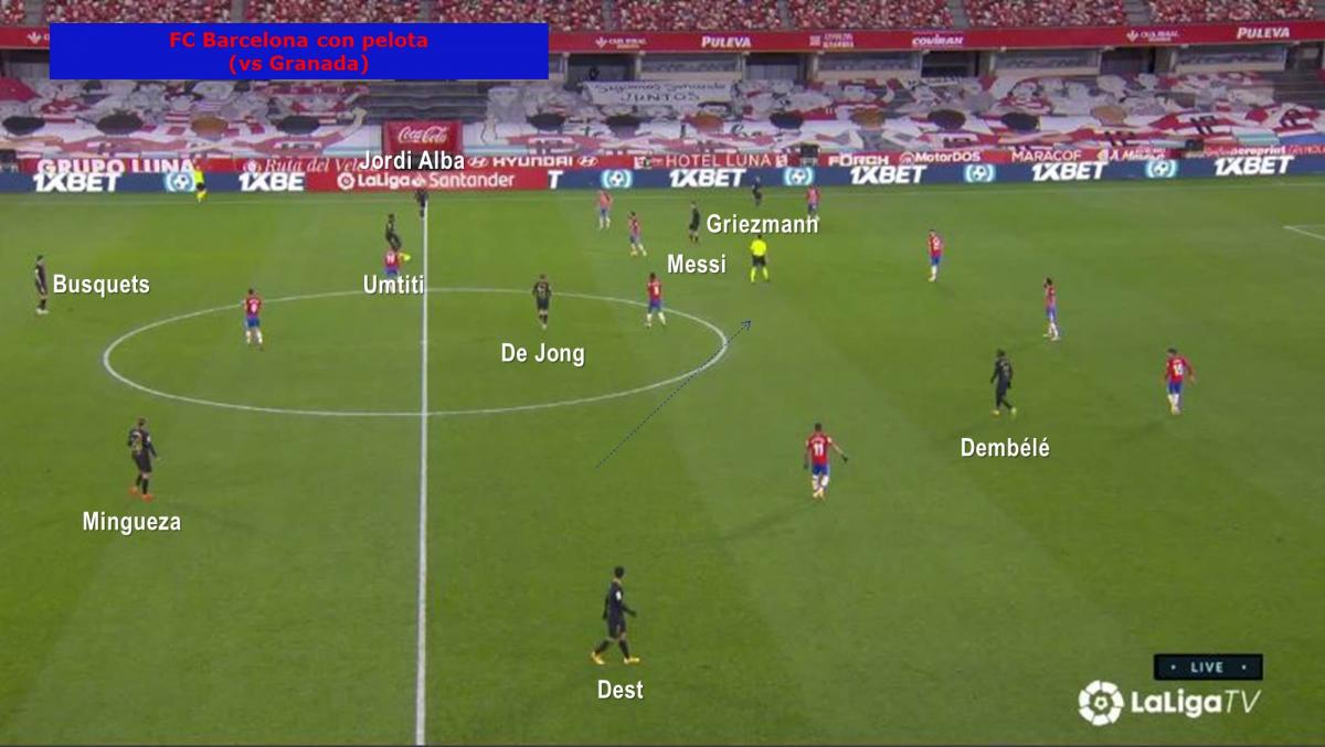 -Griezmann cerca del área: El francés, pese a todavía de estar lejos a su mejor nivel, está encontrando su posición en el campo siempre buscando jugar por dentro, atacar el área y cumpliendo con esa cuota goleadora necesaria para crecer. Con los laterales del Barcelona en campo rival (Jordi Alba y Sergiño Dest), los extremos blaugranas pueden relacionarse más con el juego y puedan alternar lugares para recibir.