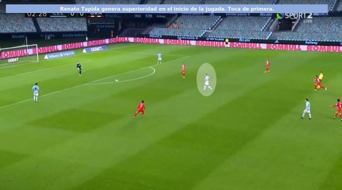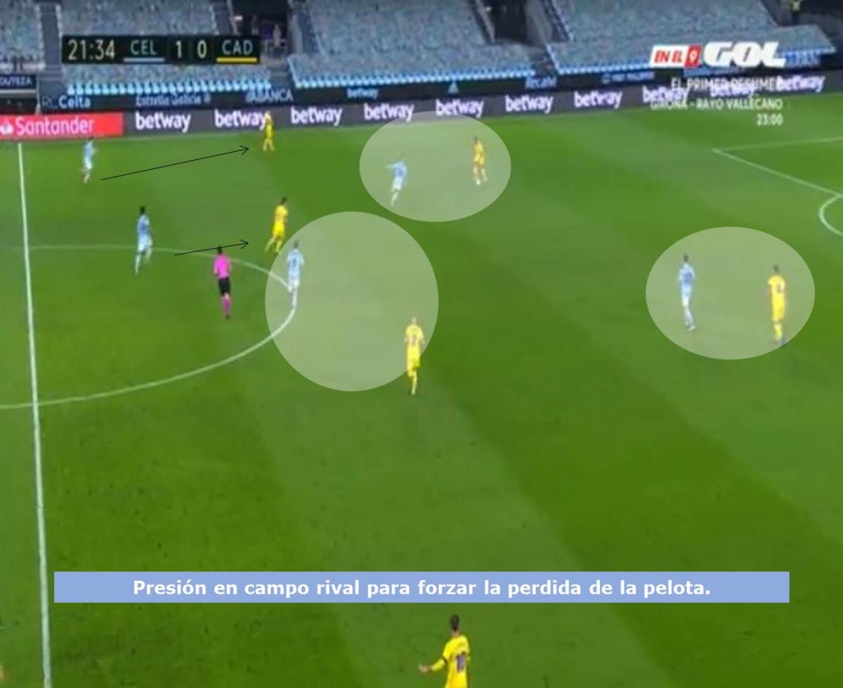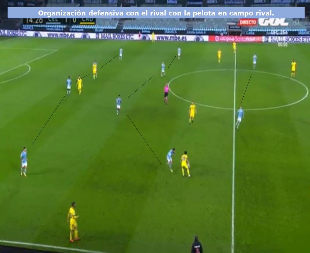 A nivel defensivo es un equipo que siempre busca presionar en campo rival y forzar la perdida de la pelota en campo rival. Quiere tener la pelota, por lo que busca recuperarla rápido para atacar con la misma intensidad. El Celta tiene una chispa que pocas veces se ha visto en La Liga y eso lo ha convertido en un equipo capacitado para gobernar muchos partidos, sea por tramos o de manera continua.