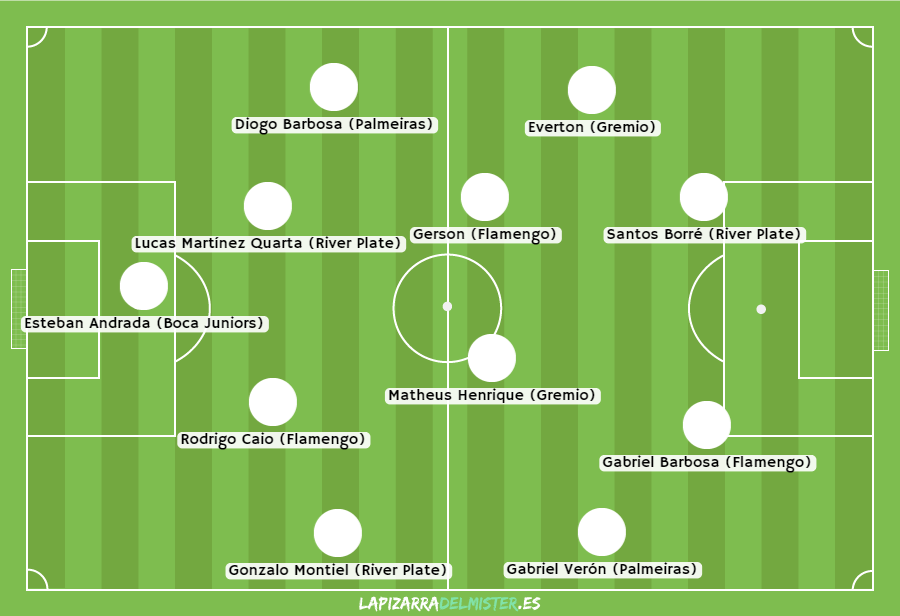 El día de hoy comienza la fase de grupos de la Conmebol Libertadores 2020, donde 31 equipos buscarán destronar al Flamengo de Jorge Jesús que viene de coronarse en la Recopa Sudamericana contra Independiente del Valle hace unos días. Por esa razón, y en forma de previa, hacemos un once con los 11 jugadores más valiosos (cada uno en su posición) de la competencia más importante a nivel de clubes del continente americano, utilizando los valores de Transfermarkt.com.
