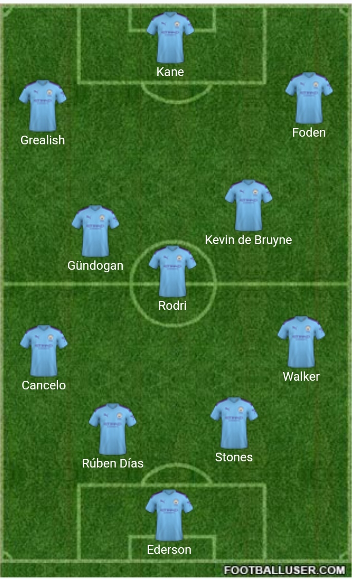 SI se confirman todas las salidas más las llegadas de Kane y Grealish, este sería el once titular que armaría Pep Guardiol para ganar la próxima UEFA Champions League. Un verdadero equipazo, casi imposible de igualar a nivel ofensivo.